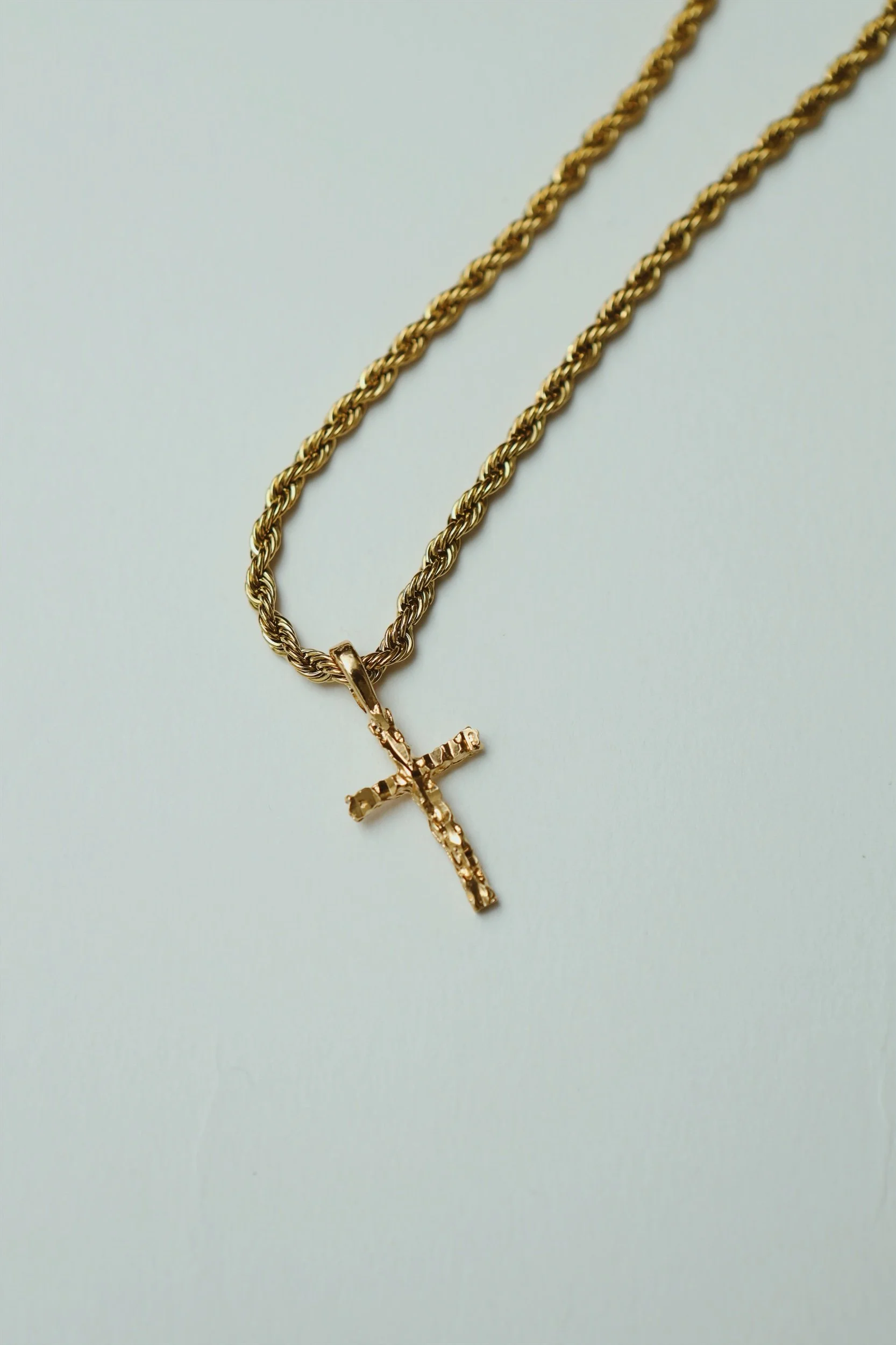 Elevate your style with the "DRMR" Nugget Cross Chain, a stainless-steel accessory that seamlessly combines faith-based symbolism with modern elegance. This finely crafted chain showcases a striking nugget cross pendant, making it a statement piece that symbolizes both faith and fashion.